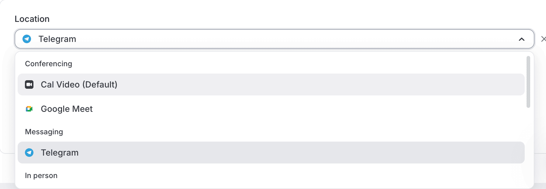 Cal.com offers a Telegram app in its app store that allows you to set Telegram as the meeting location for your scheduled events. This lets you use Cal.com’s scheduling infrastructure while hosting meetings within Telegram’s secure communication environment.