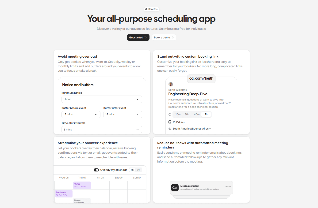 It's built for customization and automation that fits the needs of every user, from individual freelancers to enterprises. The primary benefit of using Cal.com is that it provides you with full control over how scheduling works.