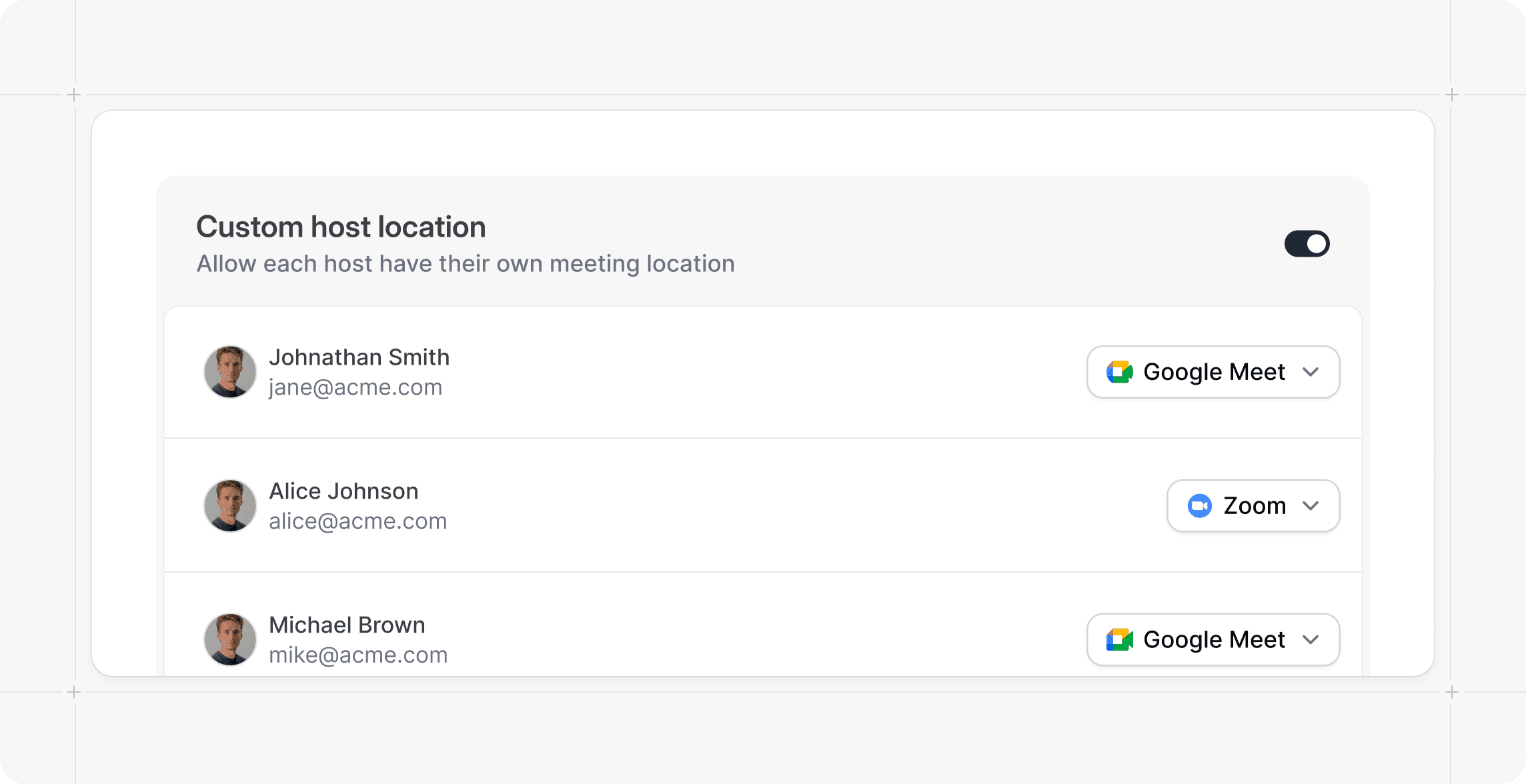 Round Robin just got a lot more flexible. You can now let each host use their own meeting location inside the same Round Robin event. So if one teammate runs calls on Zoom, another uses Google Meet, and someone prefers Cal Video or an in-person address, that’s totally fine. When a booking gets assigned, Cal automatically applies the right location for that host, so the invite shows the correct link or address without anyone needing to fix it after.