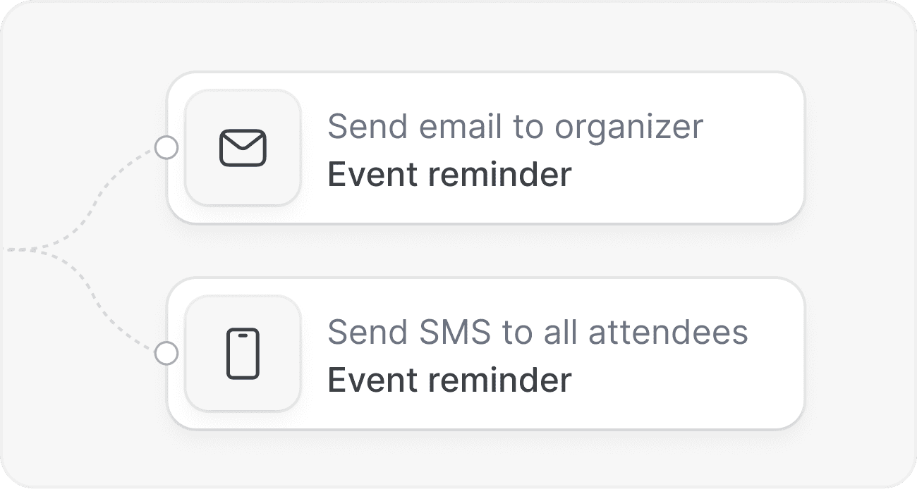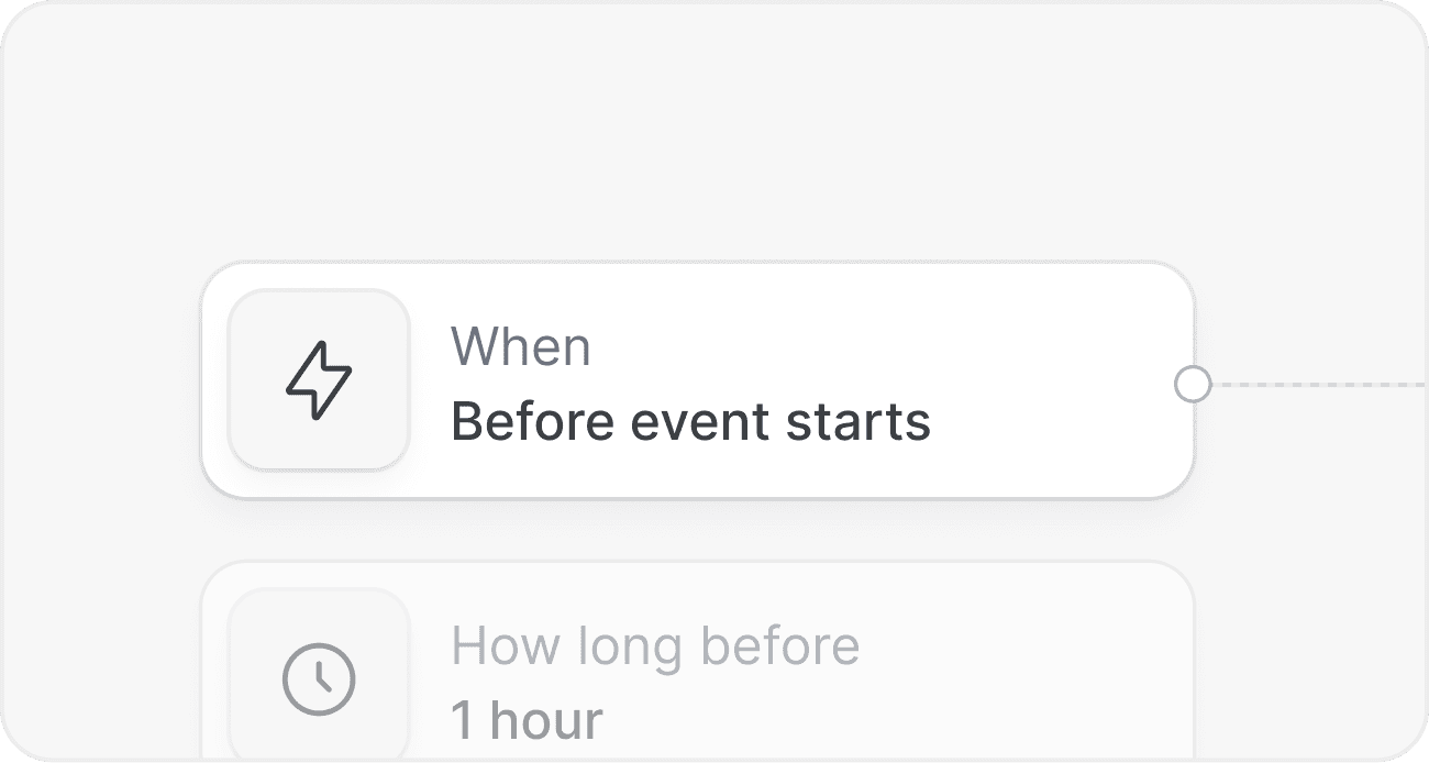Bestimmen Sie genau, was passiert und wann. Von sofortigen Bestätigungen über zeitgesteuerte Erinnerungen bis hin zu Nachverfolgungen nach dem Ereignis: Sie kontrollieren das Erlebnis.