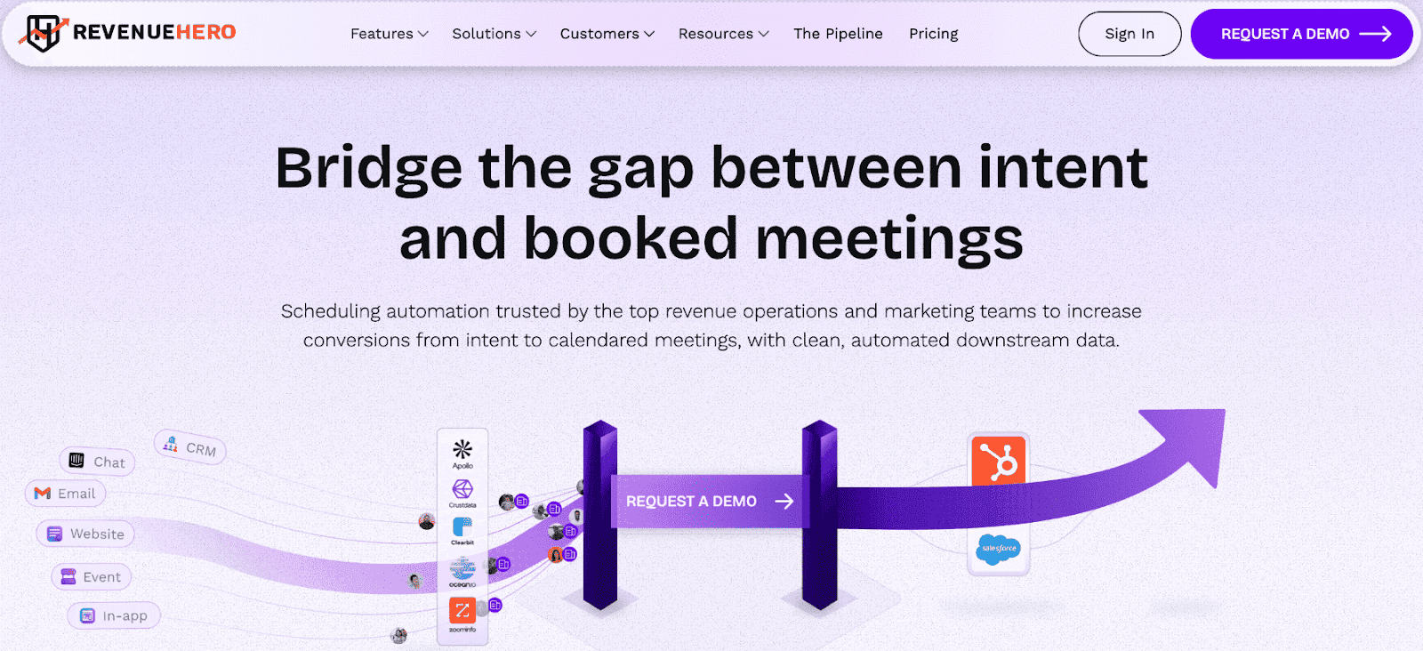 RevenueHero integrates with Salesforce, HubSpot, Marketo, Pardot, and major calendar platforms. Coverage is solid for moech stacks.