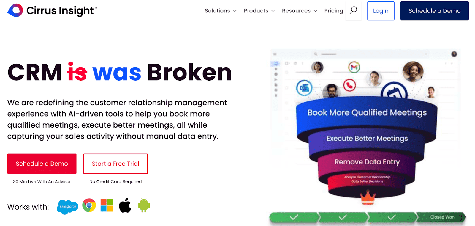 Cirrus Insight takes a different approach from most Chili Piper alternatives. It combines email tracking, meeting scheduling, and Salesforce integration into a single productivity platform. Rather than focusing solely on inbound lead routing, Cirrus Insight helps sales reps manage their entire workflow from Gmail or Outlook.