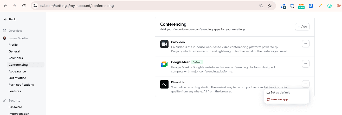 How to Connect Riverside to Cal.com (and Set It as Your Default Conferencing App)